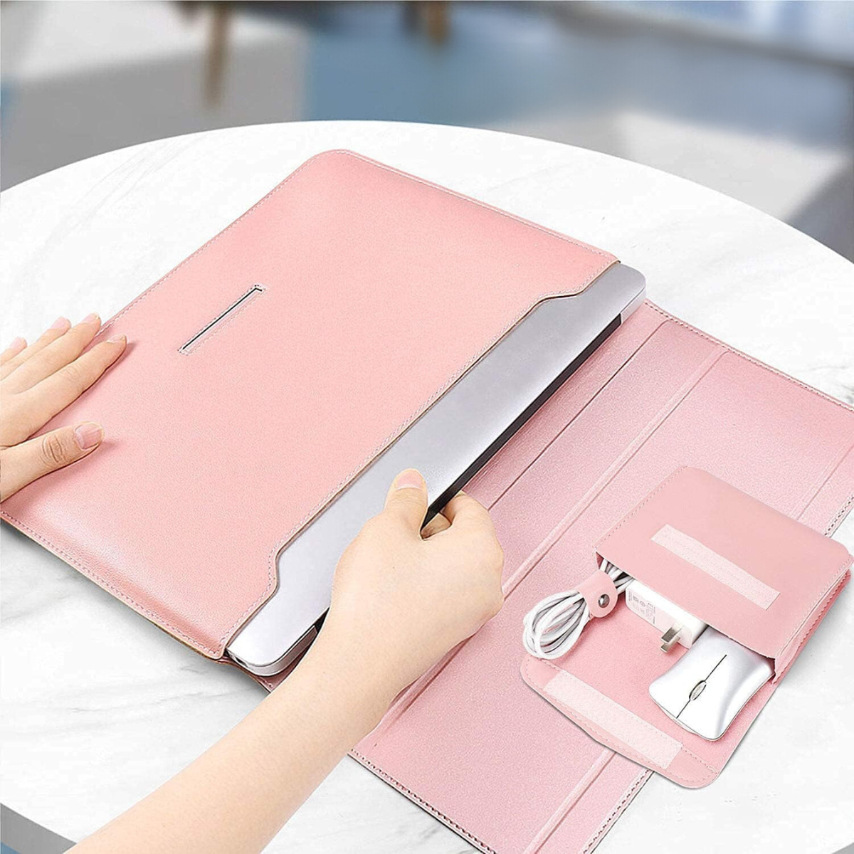 Husa pentru laptop MacBook de 13-14 inch in nuanta de roz reprezinta un accesoriu de protectie si estetic placut, adaptat pentru a oferi o solutie eficienta de transport si siguranta pentru dispozitivul dvs. Conceputa din materiale de calitate superioara, precum piele artificiala sau materiale textile rezistente, aceasta husa este meticulos proiectata pentru a se potrivi perfect dimensiunilor precise ale laptopului.